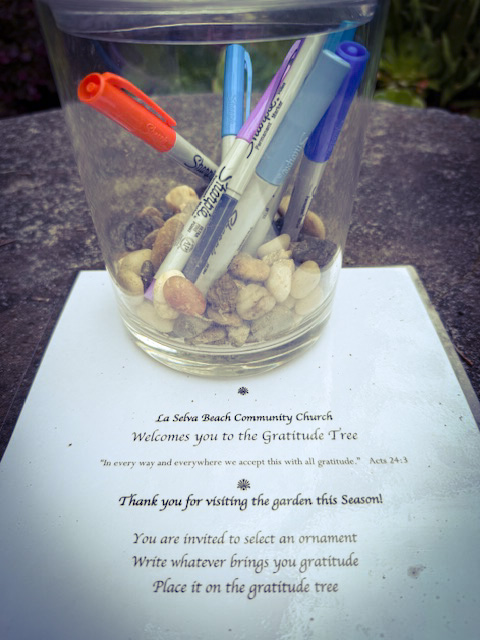 Please come spend a few minutes of silence among the flowers and trees of our garden. To prepare for Thanksgiving, we have prepared the gratitude tree for contemplation. Come by yourself or share the experience with a friend!